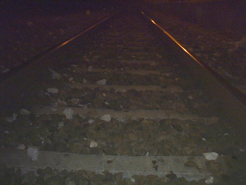 Usciamo. Cerco di esprimere il mio senso civico fotografando i binari del treno dalle traversine.